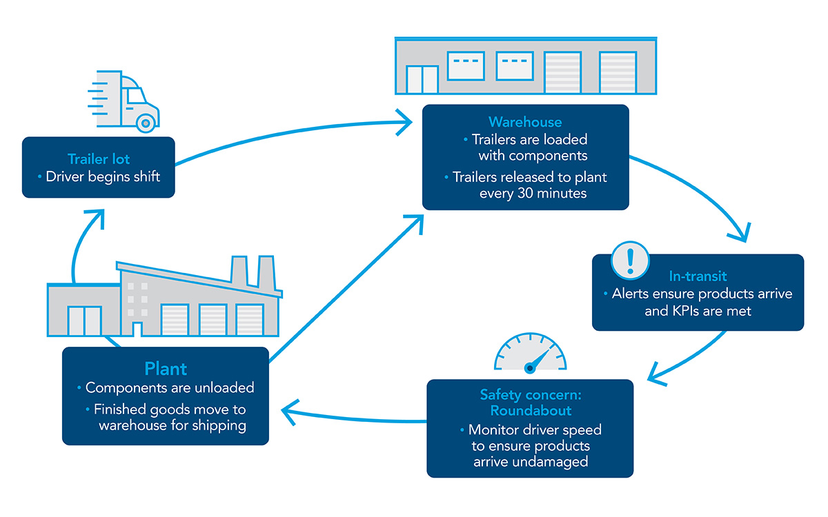 Telematics footage now documents exactly what occurred during the shuttle cycle. In-transit alerts from driver activity ensure products arrive safely, within the expected window, and KPIs are met.