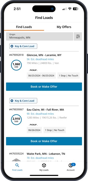 You’ll receive notifications of freight that matches your posted truck(s) when it hits our system by email or text message (if you’ve opted in). If you want to be able to book loads as soon as possible, be sure to opt in to text and respond to messages promptly.