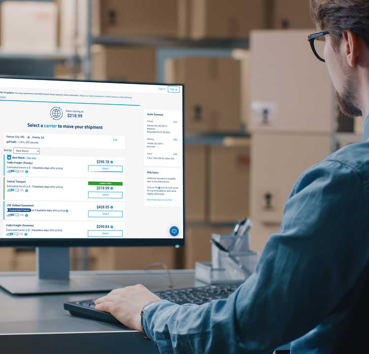 C.H. Robinson의 Freightquote®와 함께, 검증된 고품질 계약 운송회사에 액세스하면서 시간 및 비용을 절약하세요. 북미 어디에서나 운송 견적을 내고 예약하는 방법을 간편화하고 자동화하세요. 당사의 소규모 기업을 위한 TMS인, Freightview®는 직접 운임을 비교하고 원하는 운송회사를 예약합니다.