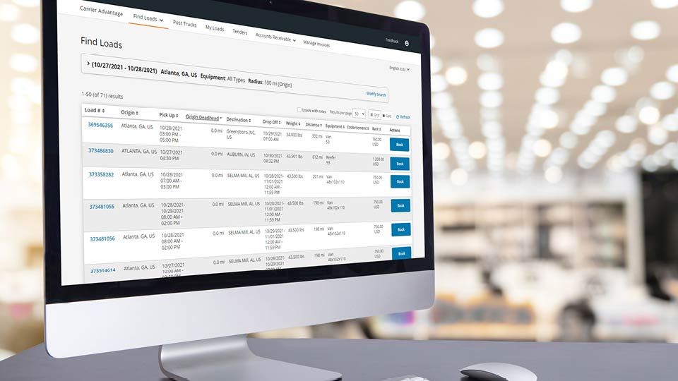 搜索和查找可用货运的最简单方法是通过 Navisphere Carrier。在 Navisphere Carrier 中,您可以按始发国家/地区、专业设备等筛选搜索结果。