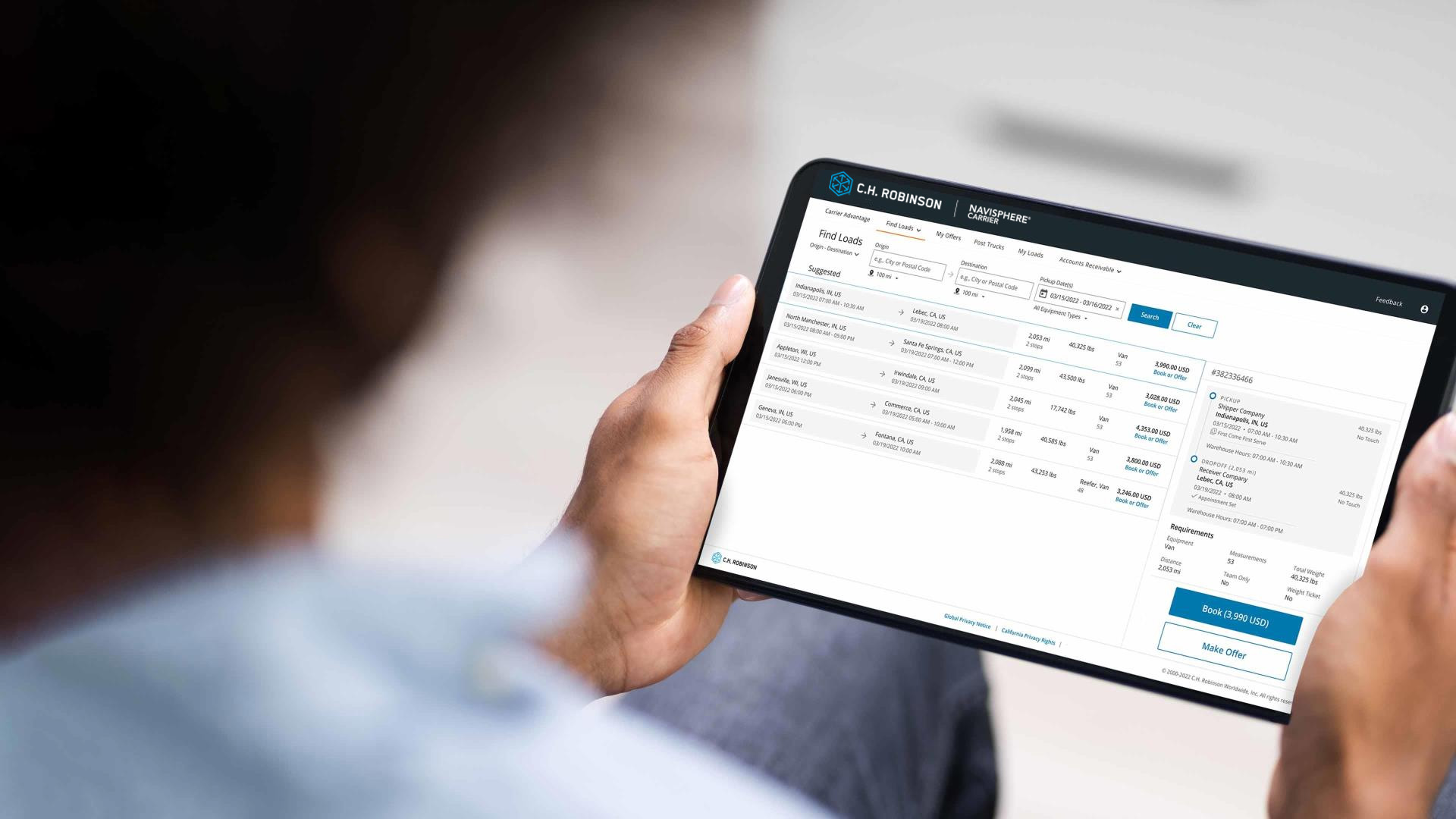 Spend less time going back and forth on phone calls or email by instantly booking the loads you want or making offers in Navisphere® Carrier. Our end-to-end technology makes it easy to keep your business moving.